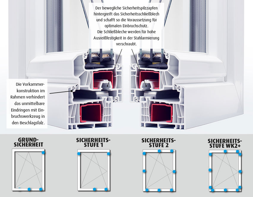 - Gehärtete Stahlschließbleche in der Profilkammer und der Stahlarmierung verschraubt