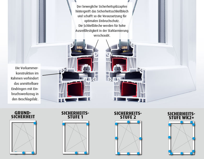 • Gehärtete Stahlschließbleche in der Profilkammer und der Stahlarmierung verschraubt