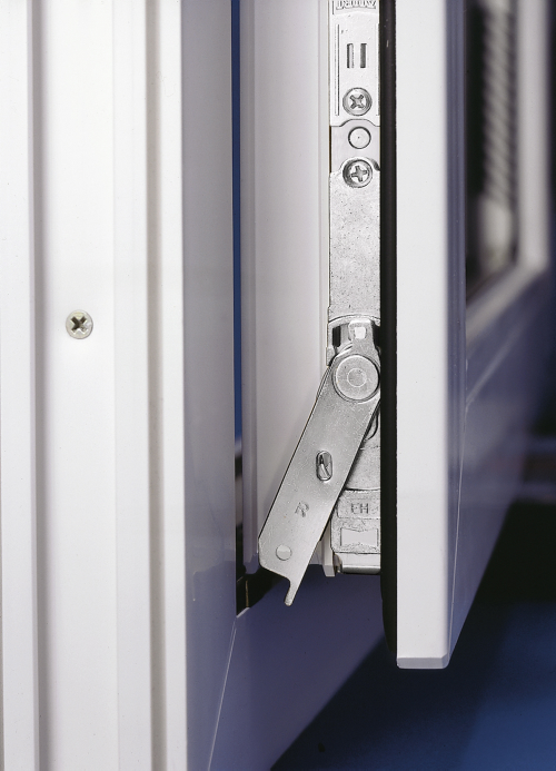 Alle Ecken des Fensters sind durch spezielle Bauteile mit erhöhter Sicherheit ausgestattet. Maximale Anzahl von Sicherheitsschließblechen, zusätzliche Pilskopfverriegelungen – oben und unten waagrecht, leisten mehr Widerstand gegen einfaches Werkzeug. Auch hier vermindert der abschließbare Handhebel das Verschieben des Beschlags. Die Handhebelbefestigung ist durch einen Anbohrschutz abgedeckt.